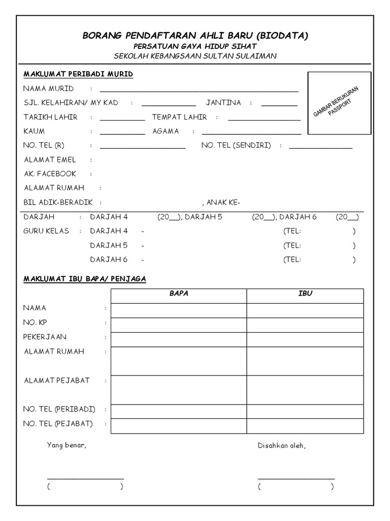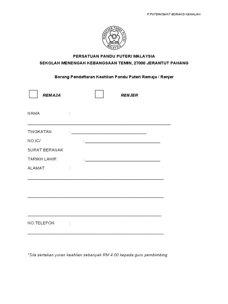 Borang Pendaftaran Ahli Persatuan Pdf